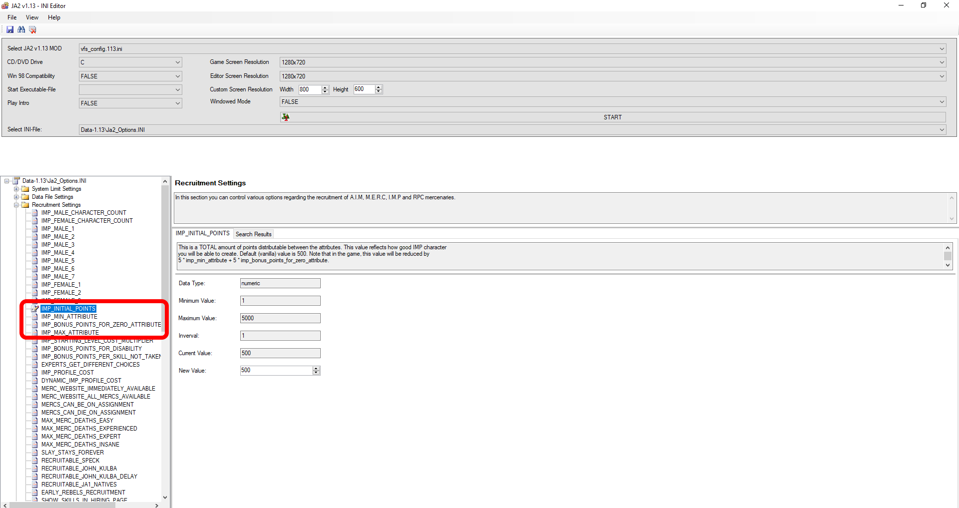 3. Select mod from Ja2.ini or use INI Editor to select mod and screen resolution