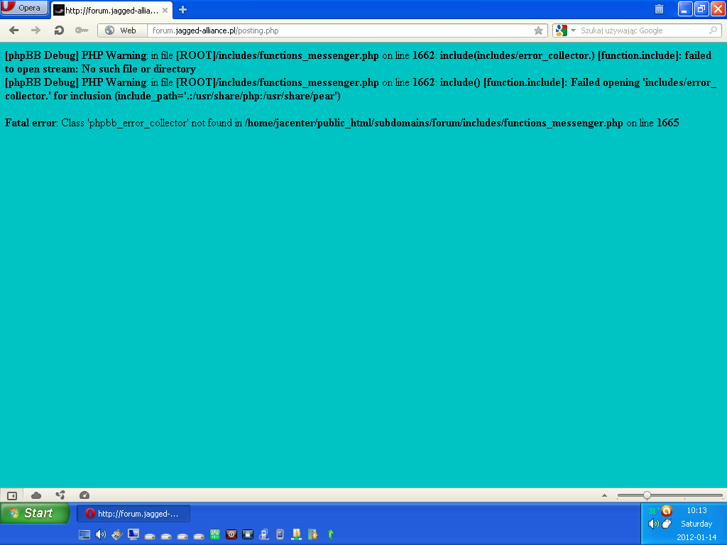 Po napisaniu posta, po wciśnięciu 'wyślij' wywala błąd. Robię wtedy 'odśwież' i mój post wychodzi ale w 2 egzemplarzach (tzn. post i 'formułka dodano dnia' i znowu mój post)