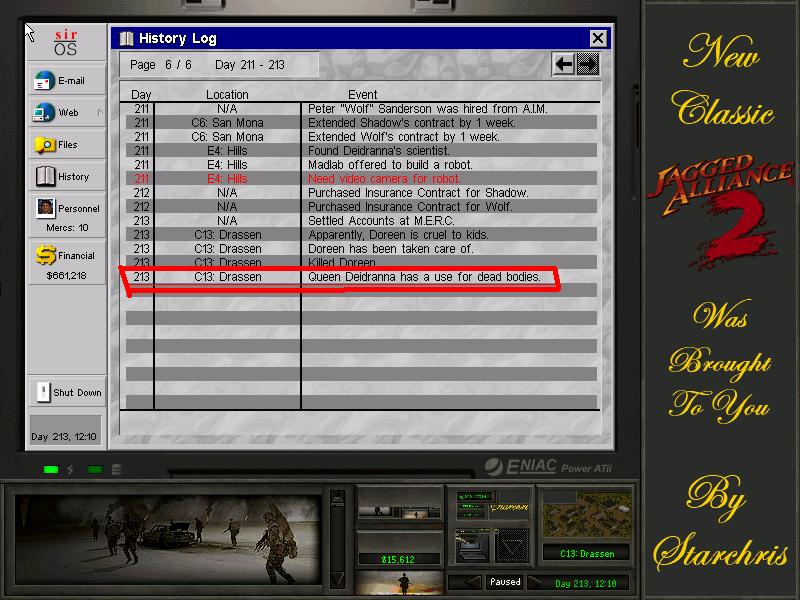 Gadałem tak nie jeden raz z podpitym księżulkiem, już w trzeci lub czwarty dzień kampanii, ale nigdy nie było to sygnałem do ataku. Tylko wpis w historii - "królowa robi użytek ze zwłok". Nic więcej. U Ciebie to już dzień, że ho ho! Zwykle rozgrywam JA2 i MOD-y do niego w około 100 dni czasu gry. Nie marudzę, ale i nie popędzam. Sprzęt naprawiony, to dupy w troki i naprzód.