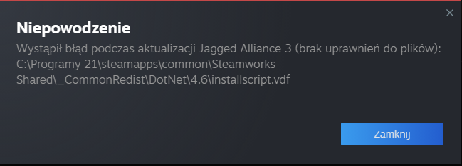Brak uprawnień? Może aktualizacja musi być uruchomiona jako administrator? Nie wiem, czy to normalne, nie siedzę na Windowsie.