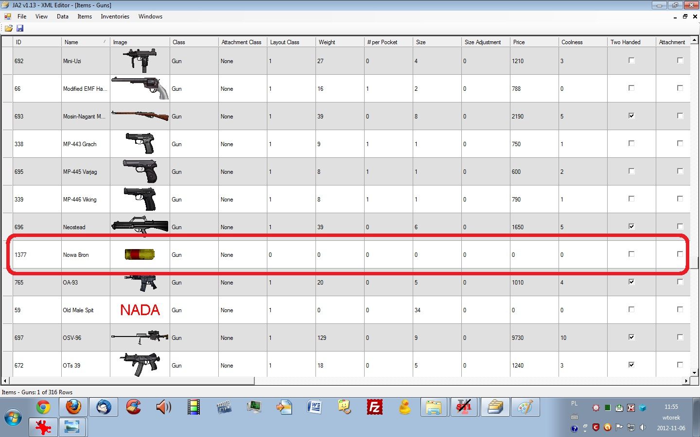 2 pierwsze bronie działają poprawnie a następne już nie...a robione są tą samą metodą, krok po kroku, tak samo jak robiłem poprzednie.